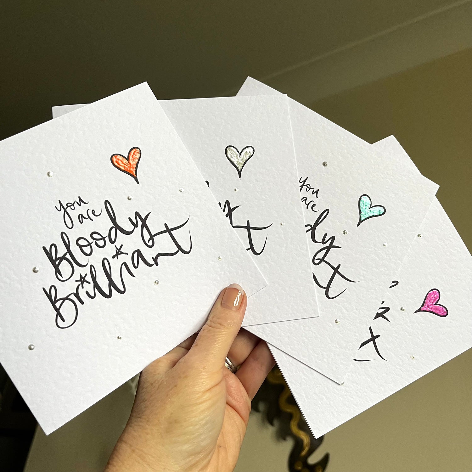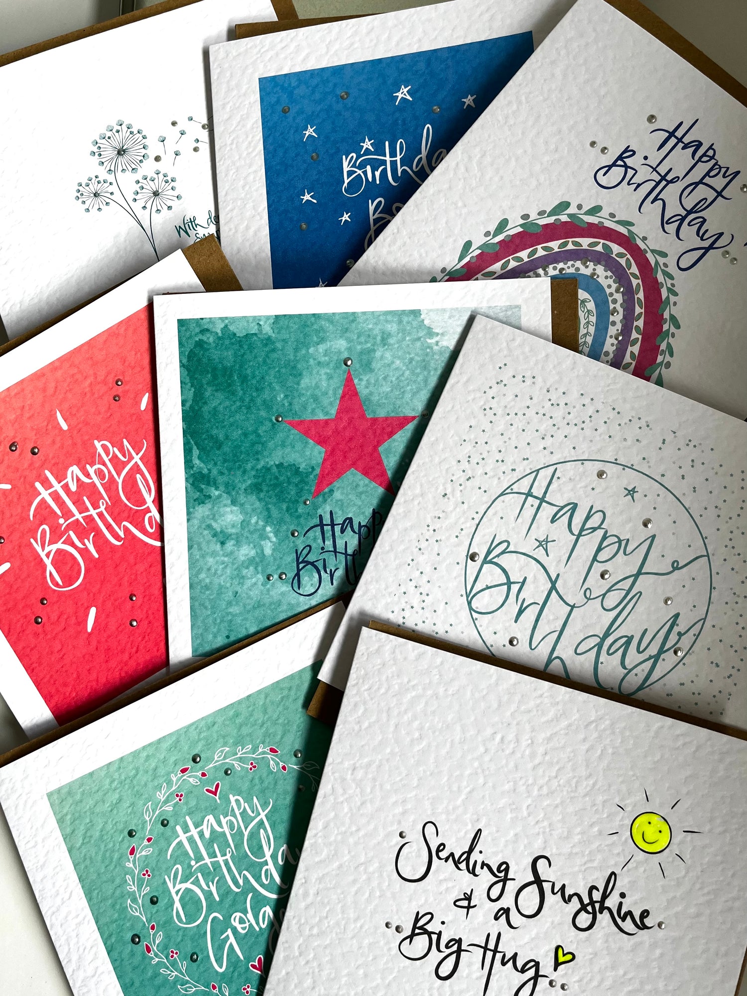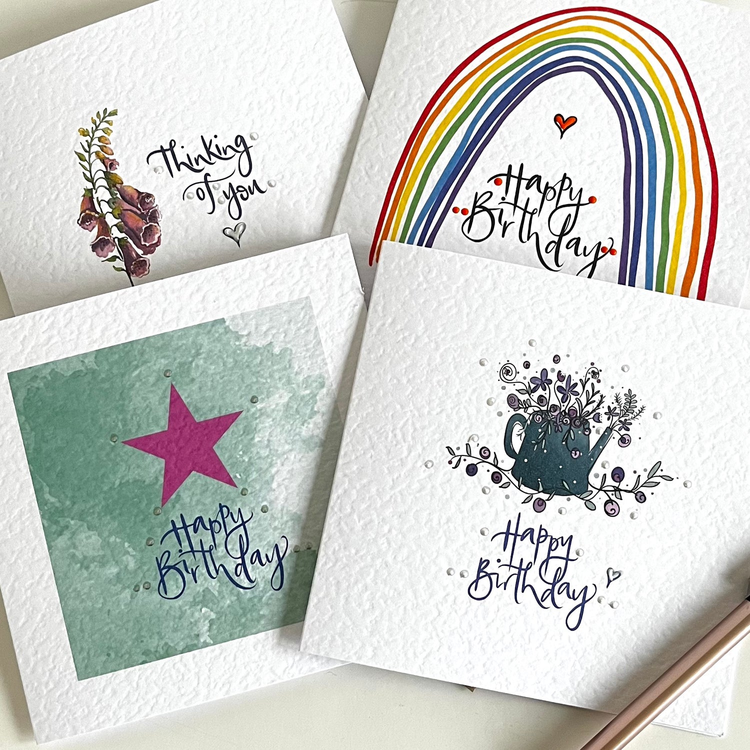 A beautiful selection of hand lettered and individually finished birthday cards, that can be personalised.