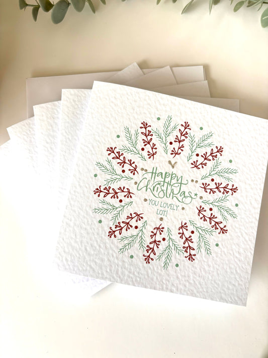 Pretty contemporary wreath ‘lovely lot’ Christmas Card Pack of 5