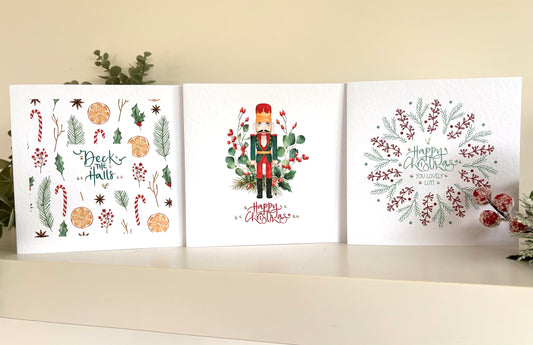 Mixed Simple Christmas card set x 6