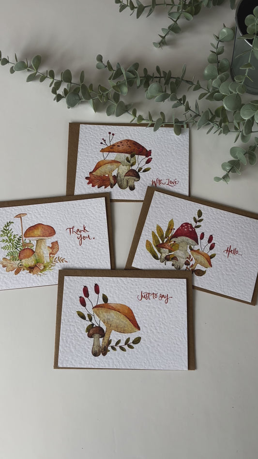 Set of 4 or 8 or Tin of 12 Fungi Postcards.