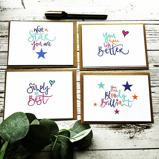 Set of A6 4 or 8 Star Print Postcards/Notecards