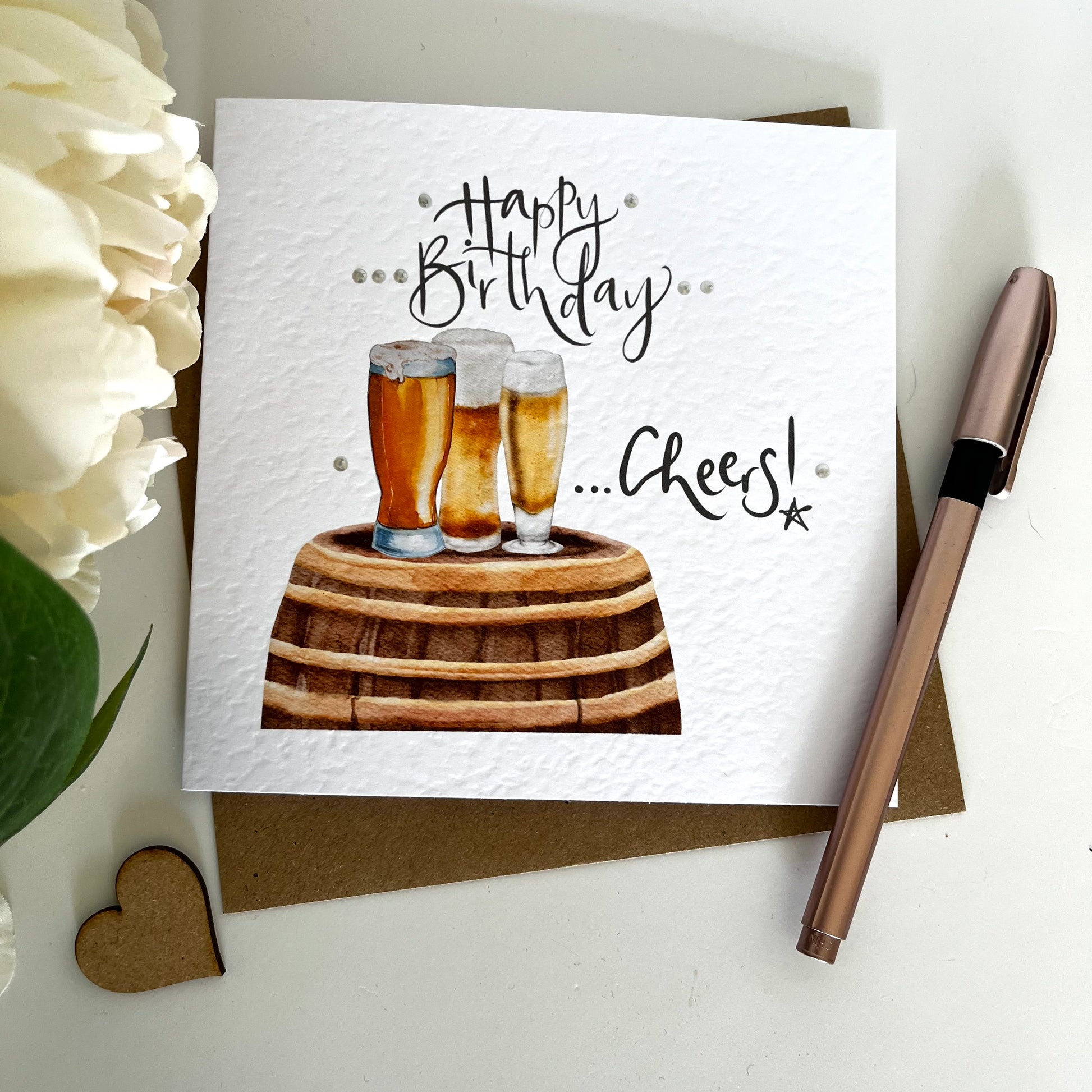 Cheers- Happy Birthday Beer Card... Beautiful, hand lettered beer card- perfect for raising a glass and sending birthday wishes especially to anyone who enjoys a beer or cider! Choose between two styles - Simple or Watercolour.