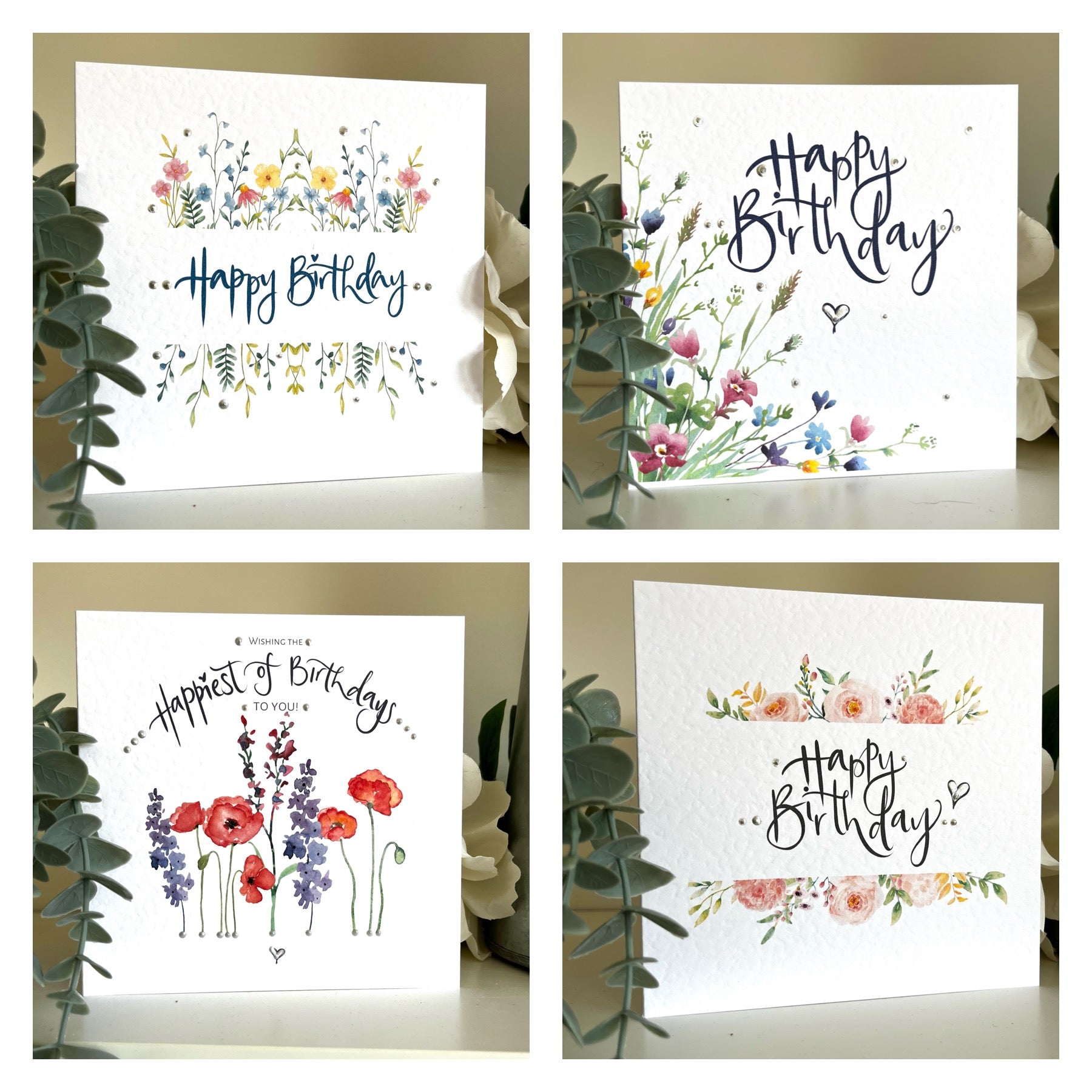 This card can come individually or as part of a set of 4 different floral birthday cards.