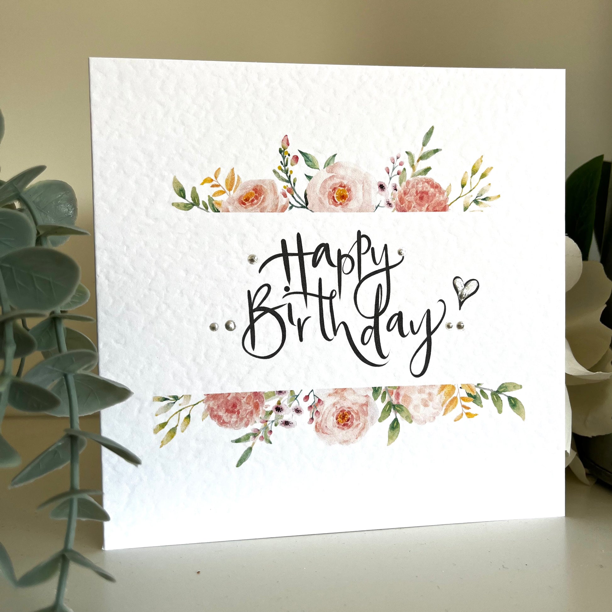 Our card features an illustration of gorgeous delicate flowers, symbolising the arrival of spring, perfect to celebrate a birthday.