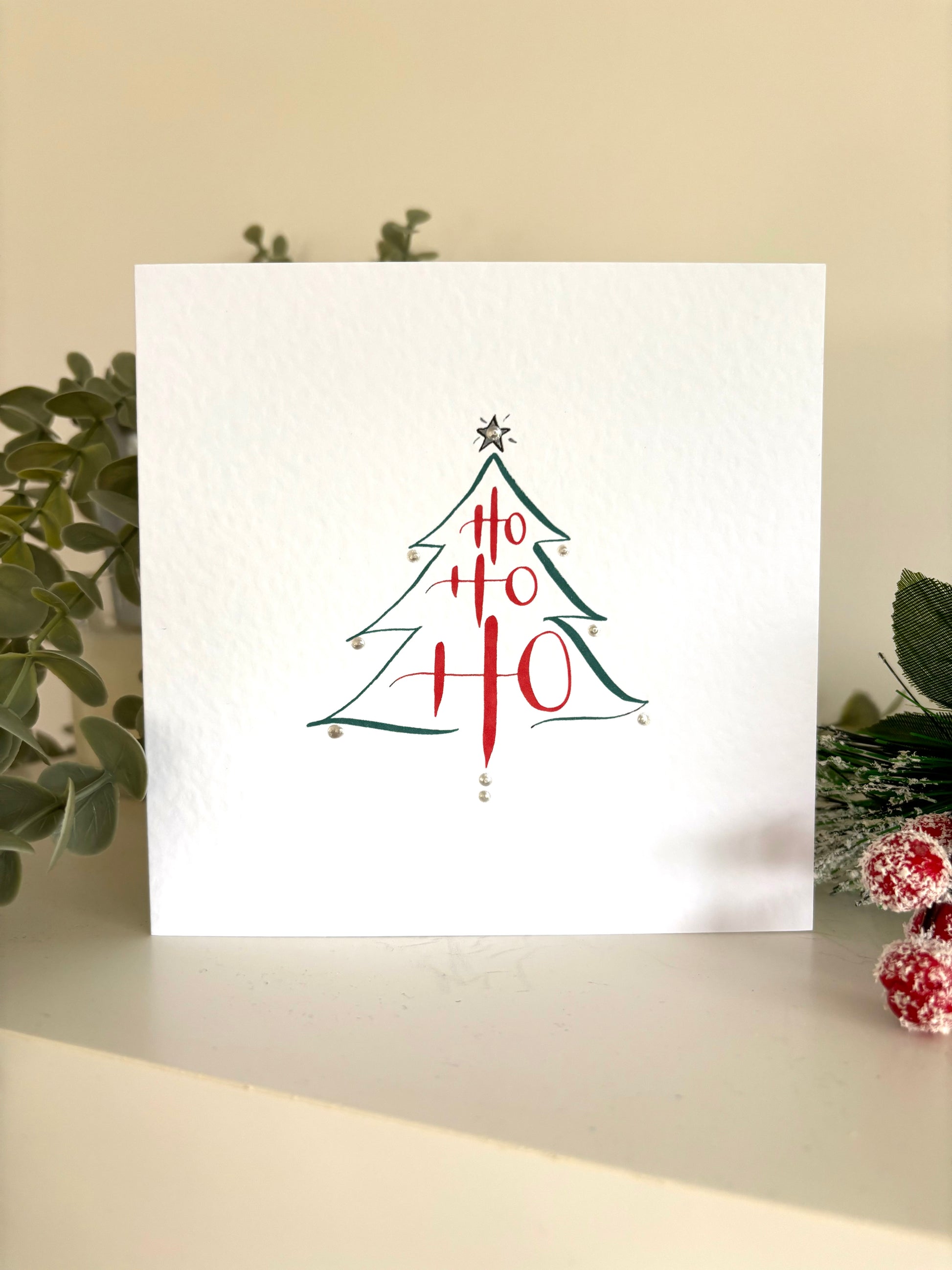 These bright and bold cards featuring a Christmas Tree cleverly designed from the Modern calligraphy words Ho Ho Ho, are the perfect way to send your festive wishes at Christmas time.