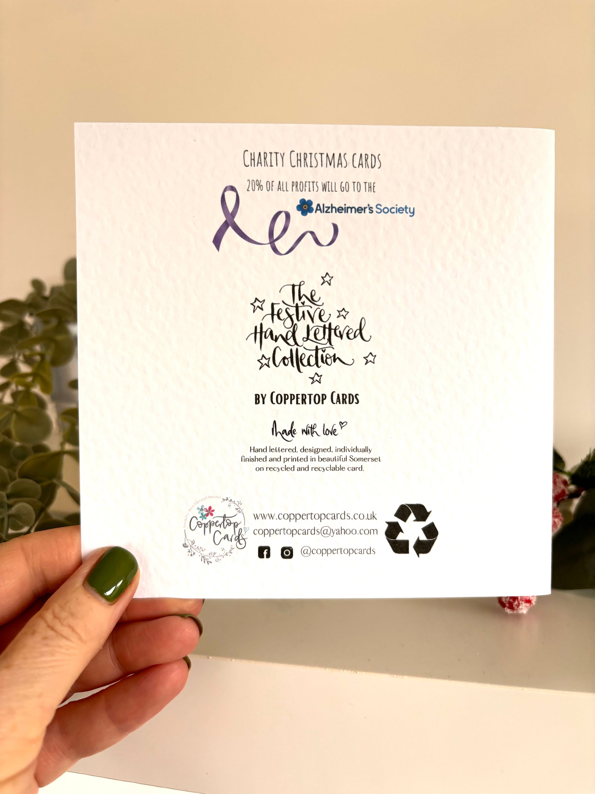 All cards are recyclable and eco-friendly. They are dispatched without any plastic, in a recyclable card-backed postal envelope, or postage box.