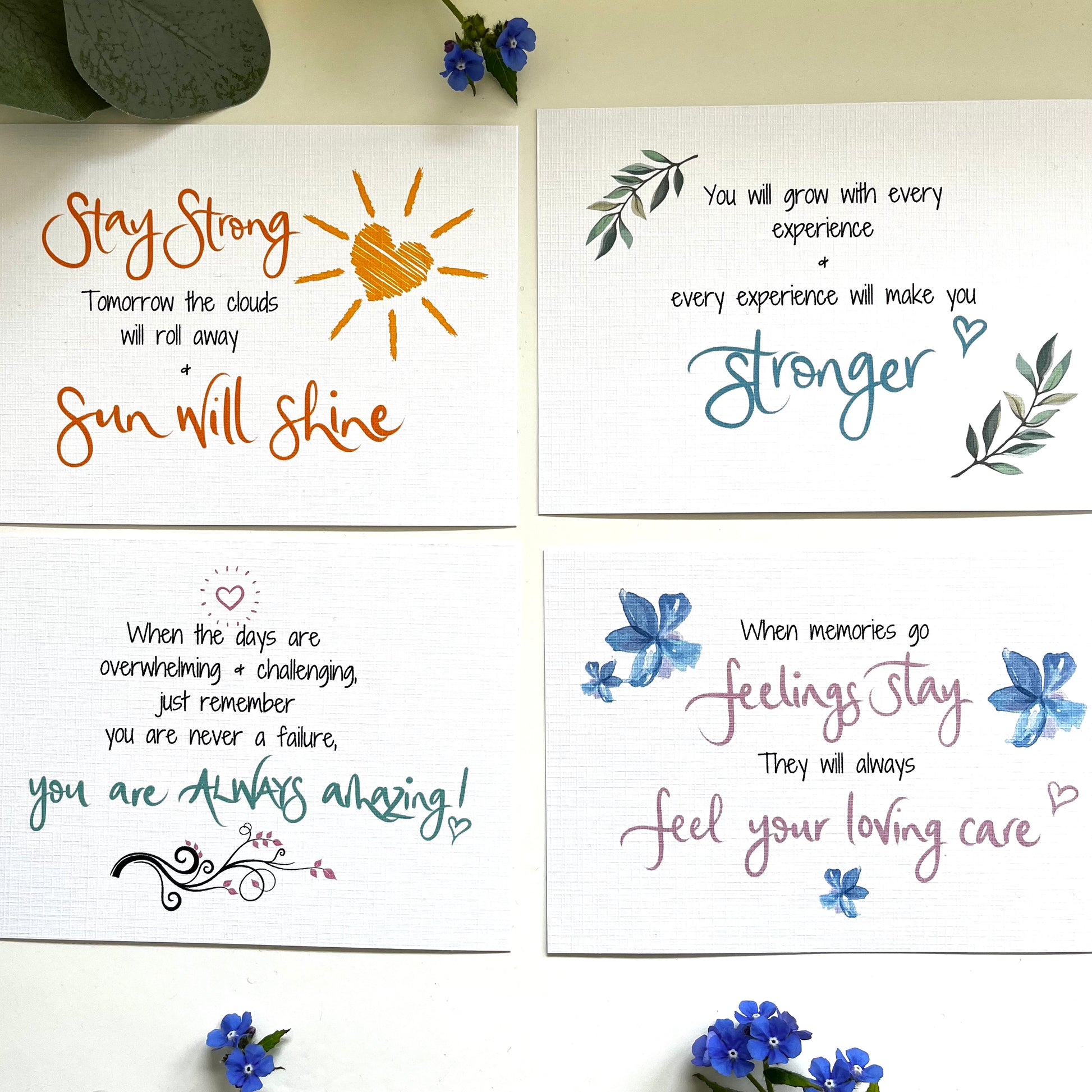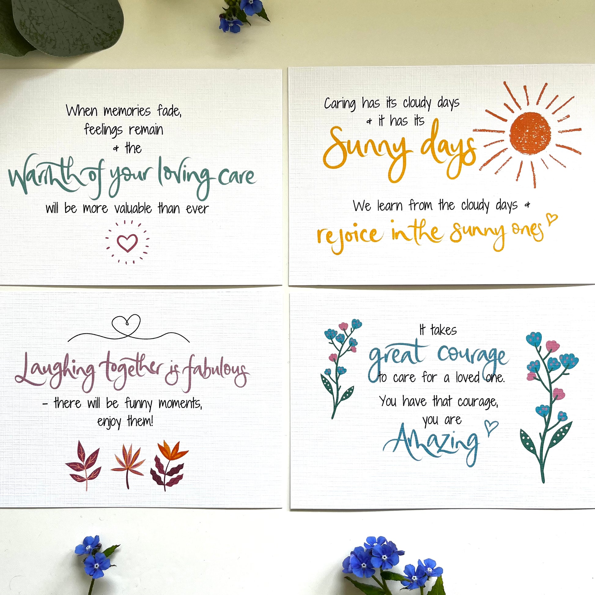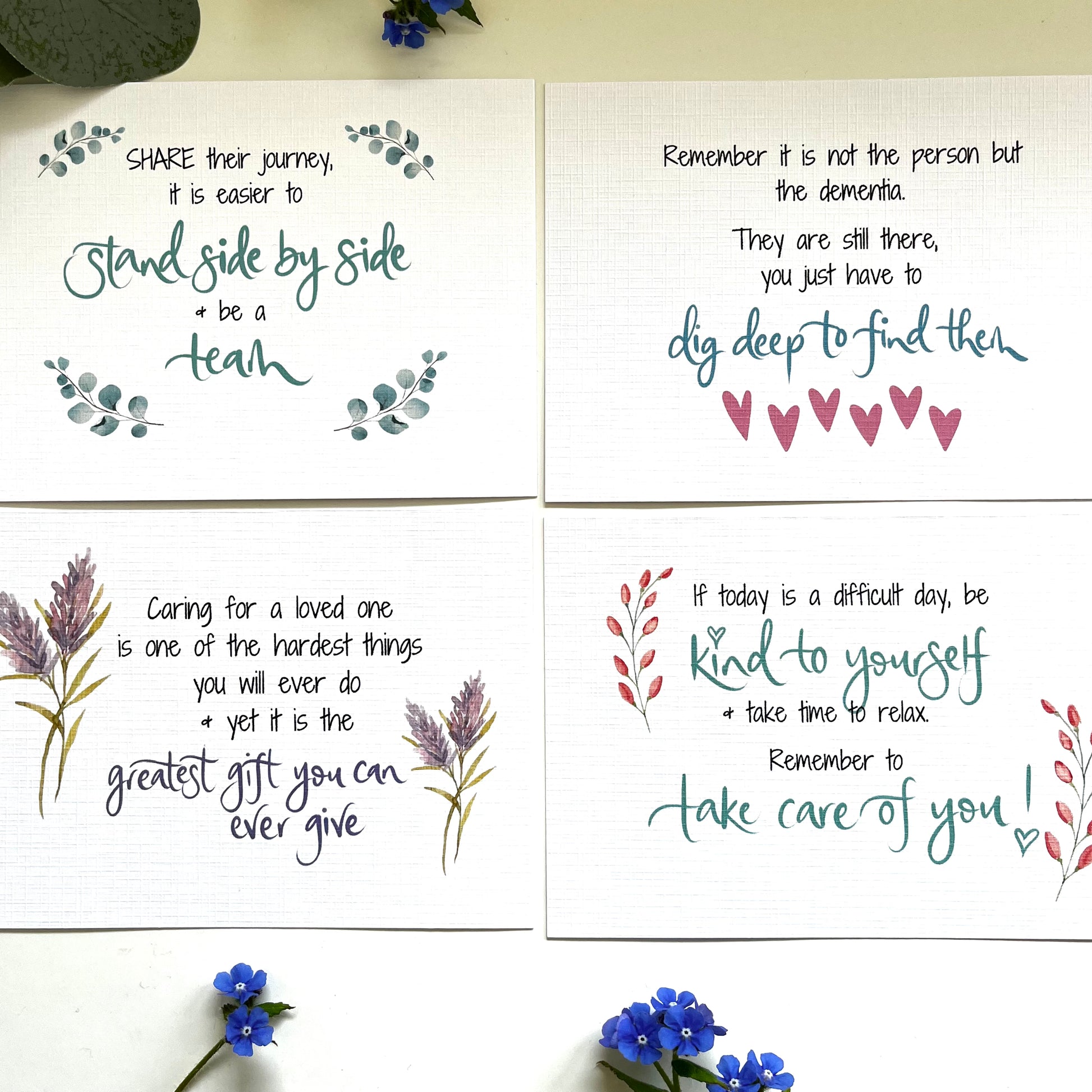 These lovely sets of postcards have been loving designed to bring positivity and reassurance to both those living with Dementia, but also those caring for loved ones with Dementia.
