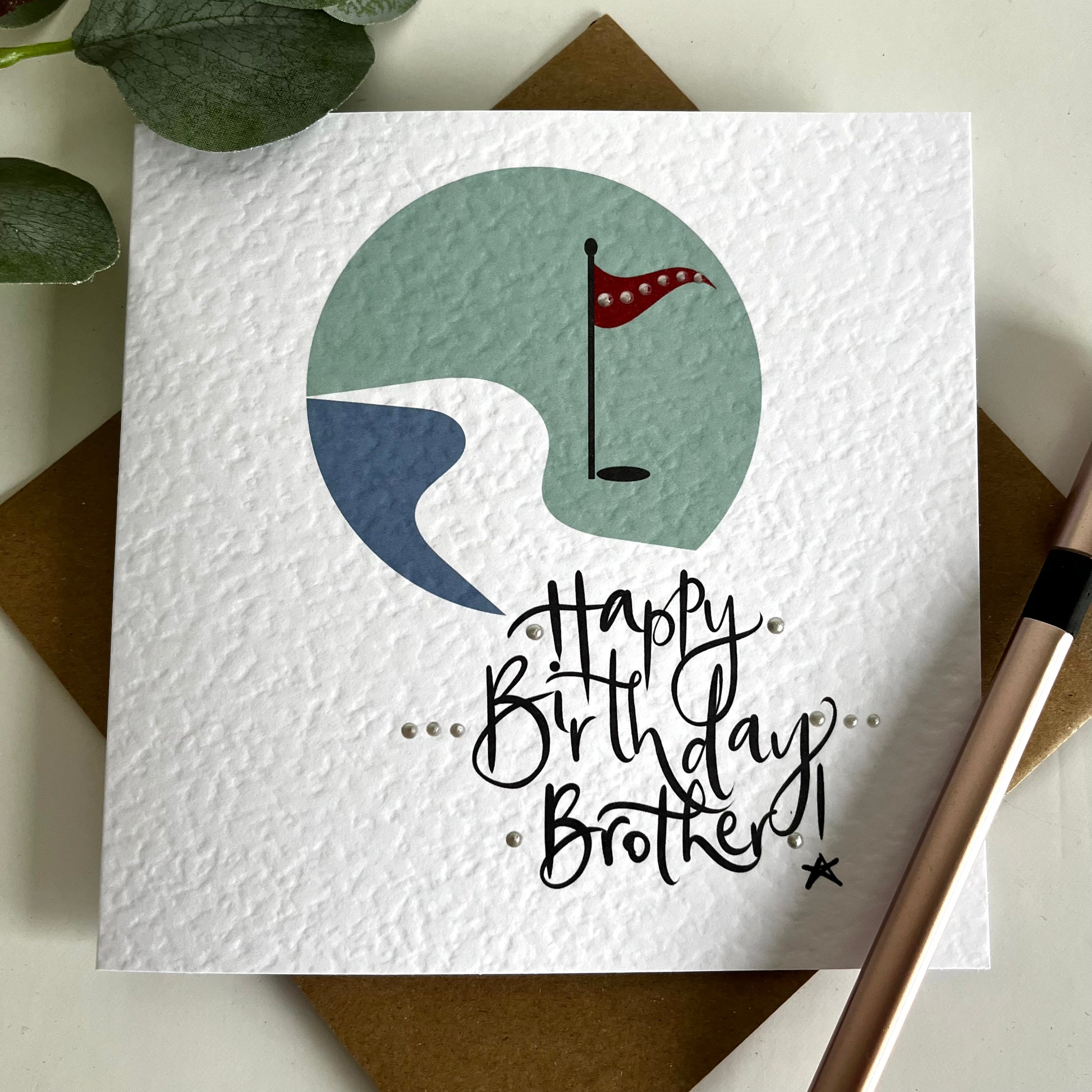 Wish your favourite golfer a happy birthday with our hand-lettered sustainable greeting card.