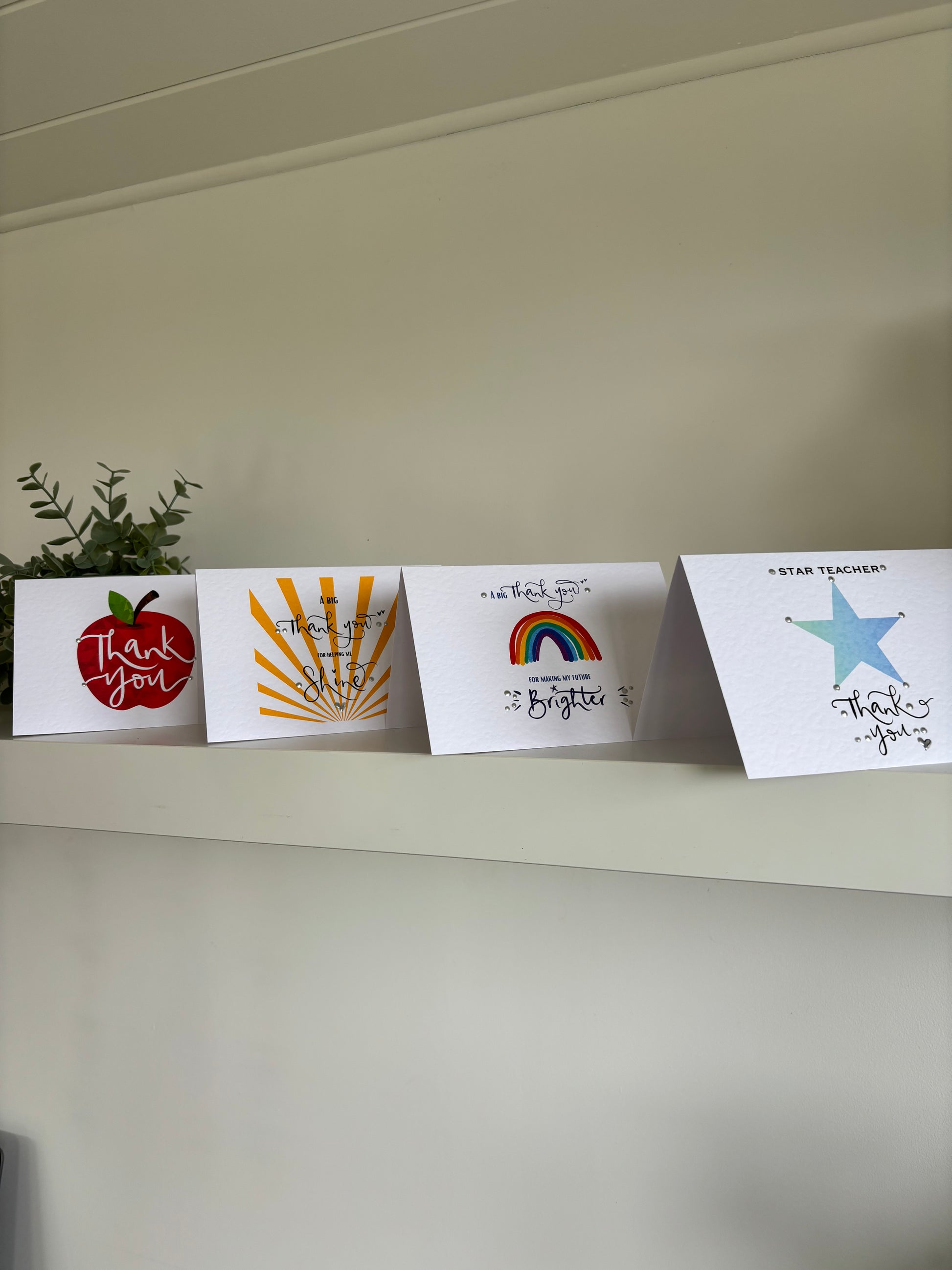 Send your appreciation to your child's teachers with this set of 4 or 8 A6 cards.