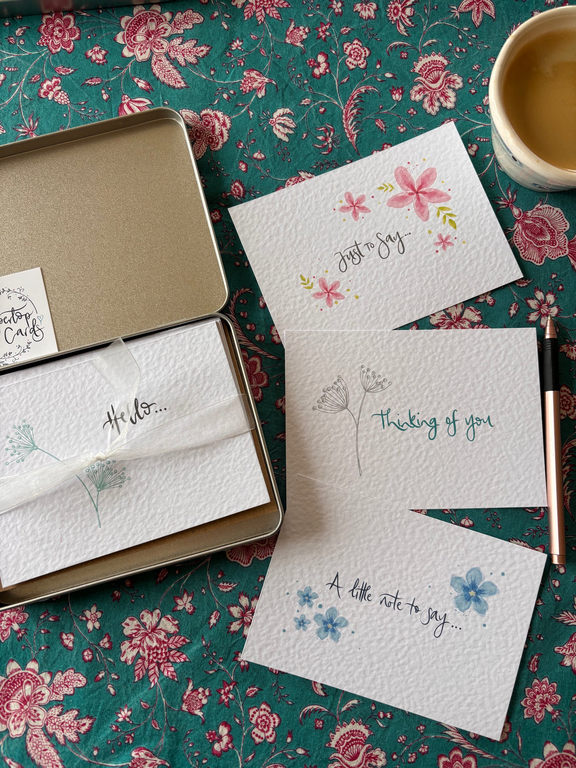 Send a beautiful postcard to say Thank you or a little note with one of our hand-lettered sustainable note cards, or they make fabulous small gifts, perfect for Secret Santa or stocking fillers. These are best sellers at all in-person fairs especially around Christmas!